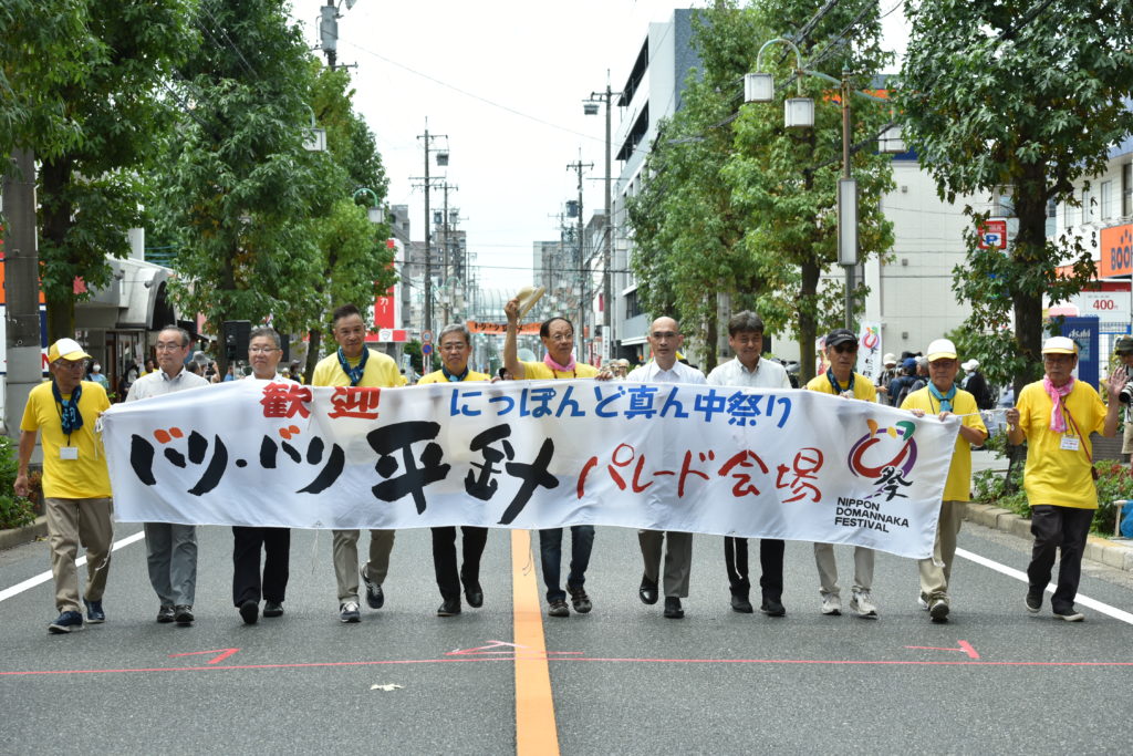 水野天白区長・須崎大会顧問・中島実行委員長・近藤学区長ほかによる パレード模様